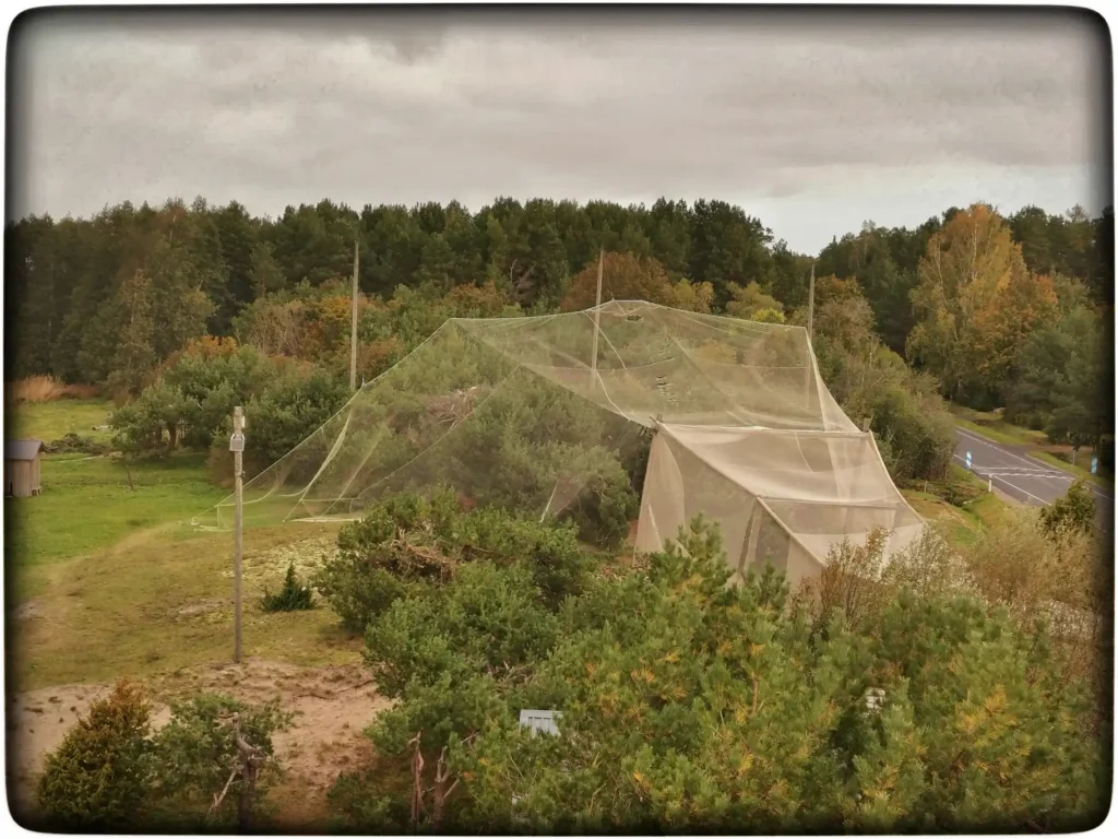 Üks mees läks mööda laudteed kiirel sammul mere poole, arvasin, et mõni raja külastaja ja ma polegi suhteliselt varajasel tunnil siin ainuke huviline. Vasakul märkasin peagi uut kummalist ehitist, võrke puudel ja isegi natuke üle nende.