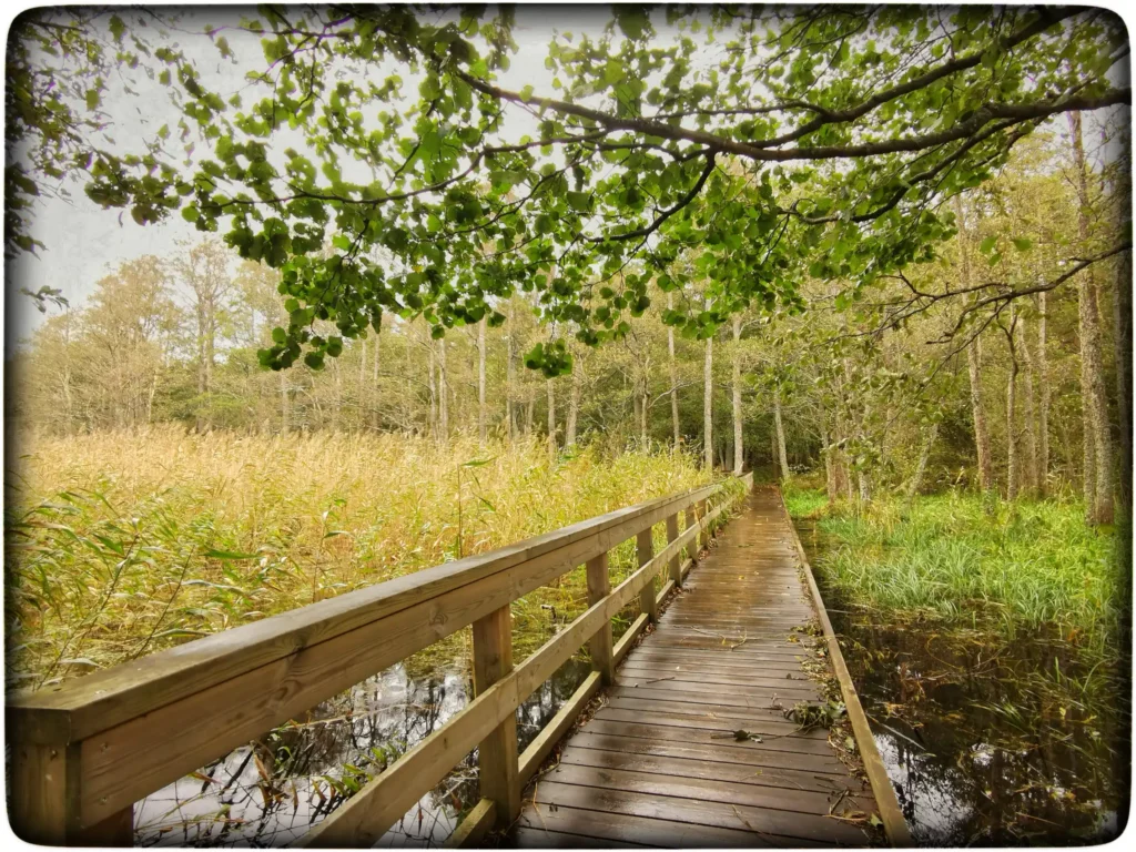 Raja algus oli ilus, peale murdunud oksa võrast läbi tungimist, omamoodi nagu üllatus. Pikk ja sirge laudtee käsipuuga üle veepinna. Loodus oli siin kaunis, mulle meeldis.