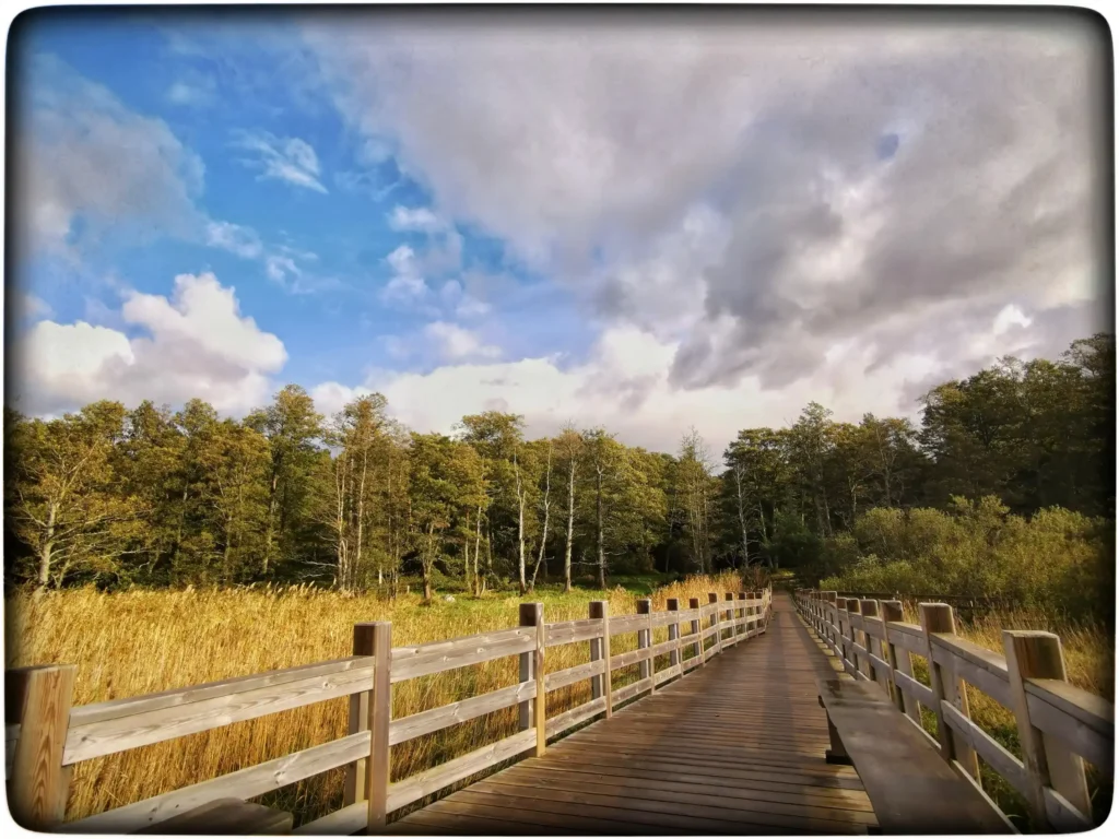 Sadu hakkas ka lõpuks järgi jääma ja polnud see nii hull midagi. Olin rõõmus, et ikkagi võtsin kätte ja end uute avastustega hellitasin. Taevas tõmbus selgeks ja peagi oli päike väljas. Uus häda ainult see, et laudtee vihmast nii libe ja vabalt enam astuda ei saanud, kukkumise oht suur. Siin oleks hea olnud võrk laudpinnal, siis pole isegi jäätumise korral libisemise ohtu.
