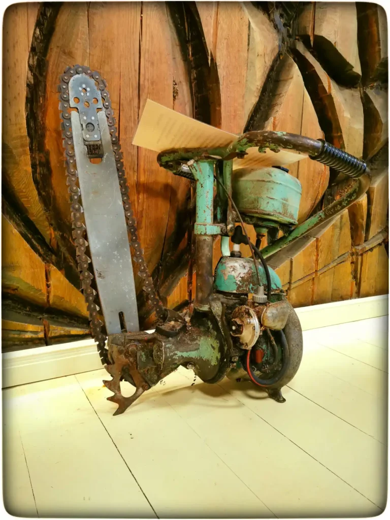 Kõigepealt alustasime ühest üksikust ruumist, kuhu saamiseks pidi trepist alla minema. Seal oli kõike metsaga seonduvat ja väljapanekute eksponeerimisel kasutatud ära iga väiksemgi pind ruumis. Näha sai nõukaaegset tumetohelisest kangast metsavahi vormi, kust ei puudunud uhke nokamüts ja kõvematel tegijatel ei puudunud isegi pagunid õlgadel. Õnnestus näha ka palju kuuldud Družba saage. Huvitav oli saada teada selle masina ajaloost ja mind üllatas, et selle mõtles välja eestlasest füüsik, tõlkija ja kirjanik Boris Kabur 1947. aastal vangilaagris. Algselt oli ta leiutise nimi Taiga, aga hakati 1957. aastast tootma hoopis Družba nime all. Družbadega lõikas kogu NL puid ja raiete mehhaniseeritus kasvas pea neli korda, aastatel 1961-1970.
