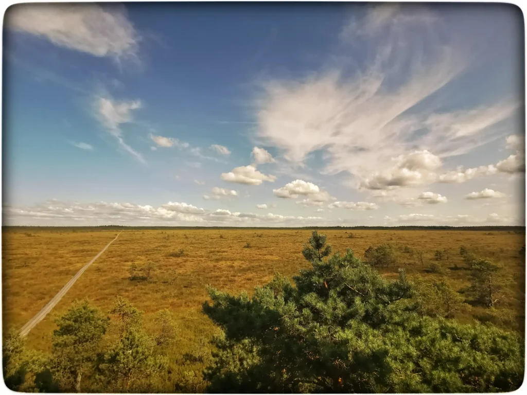Rada muutus nüüd lõputuna näivalt pikaks ja ka natuke igavaks. Olen iga rabamatka ajal püüdnud tabada raba, soo eripära, mis on just omane antud kohale, aga see on olnud raske. Raba eriti näib nii ühtemoodi olevat kus iganes minna. Üle märgala oli juba hästi kaugelt aimatav vaatetorn, väreles kuuma päikese käes.