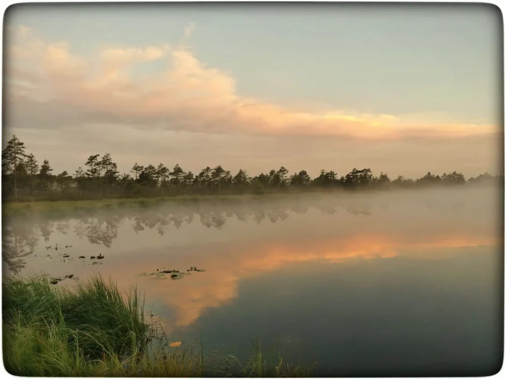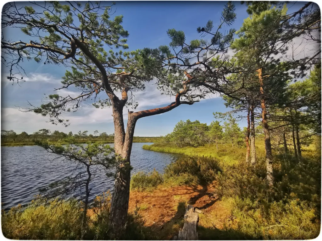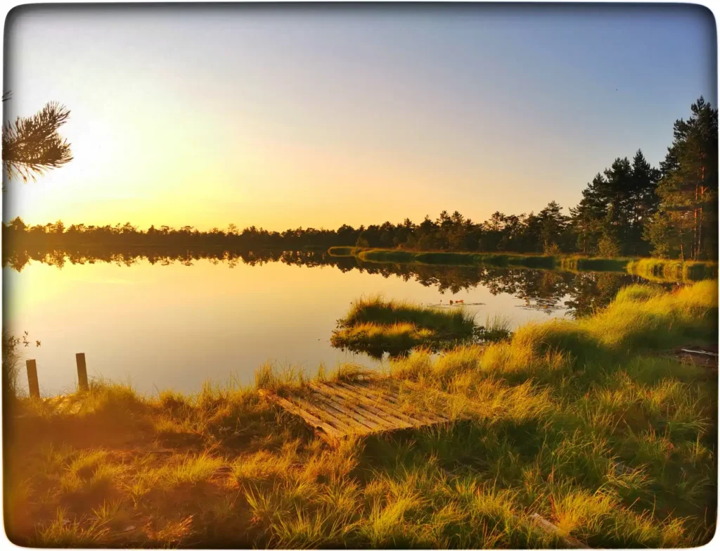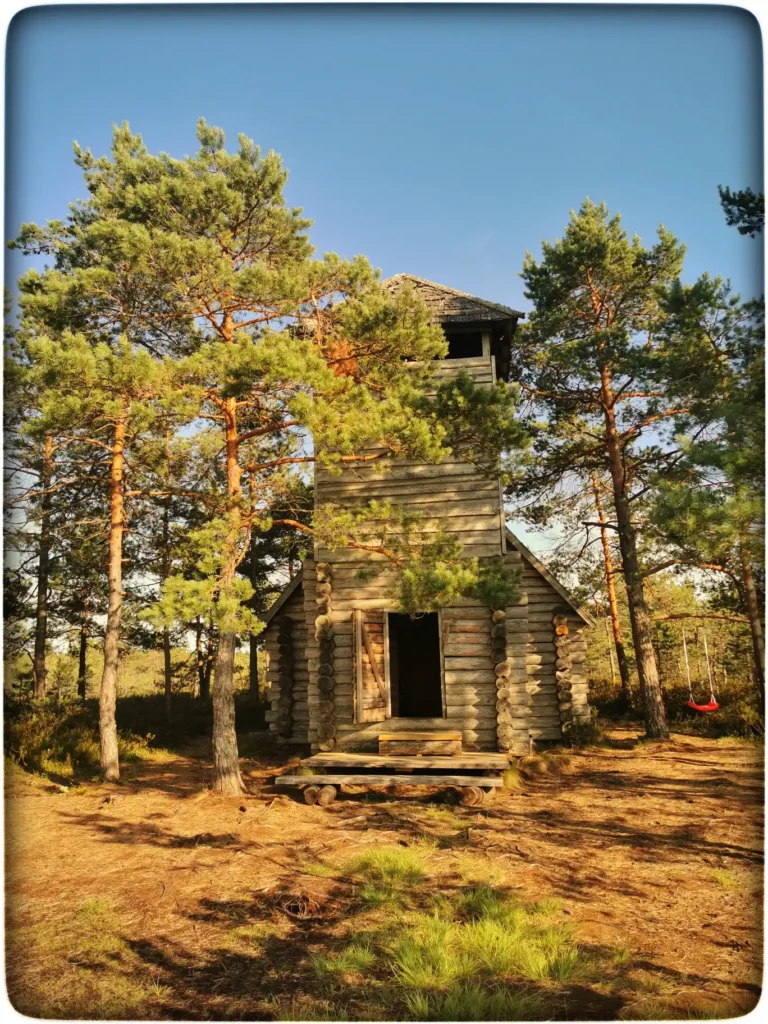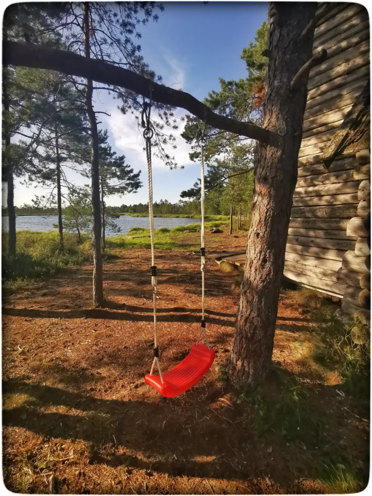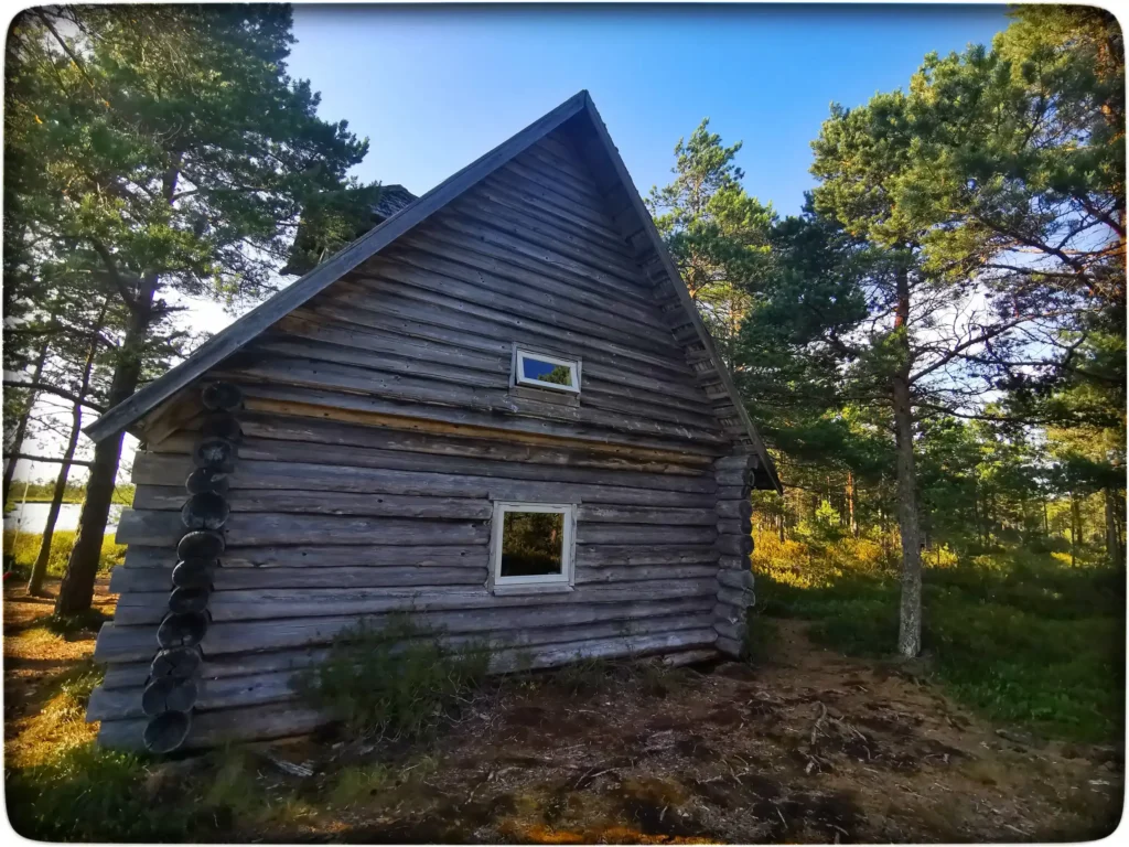 Hakkasime siis oma öömajaga tutvuma. Esmalt hakkas kohe silma värskelt parandatud läveesine. See tähendab, et koht on rahvale oluline ja hoitakse hinges veel, kuigi hoone ise on väljaspoolt hall ja veidi väsinud ilmega. Koht oli kaunis, otse trepi ees kohe järv ja ümber onni rabamännik. Siin otseselt midagi vau effektiga polnud, aga jätkuvalt oli see koht minu jaoks väga erilise energiaga. Tundsin, et selles kohas on oma võlu, mis on säilinud ja pole kuhugi ära kadunud. Kommertslik turism pole seda ära lörtsinud ja arvan, et see koht võikski jääda selliseks eraldatud pelgupaigaks.