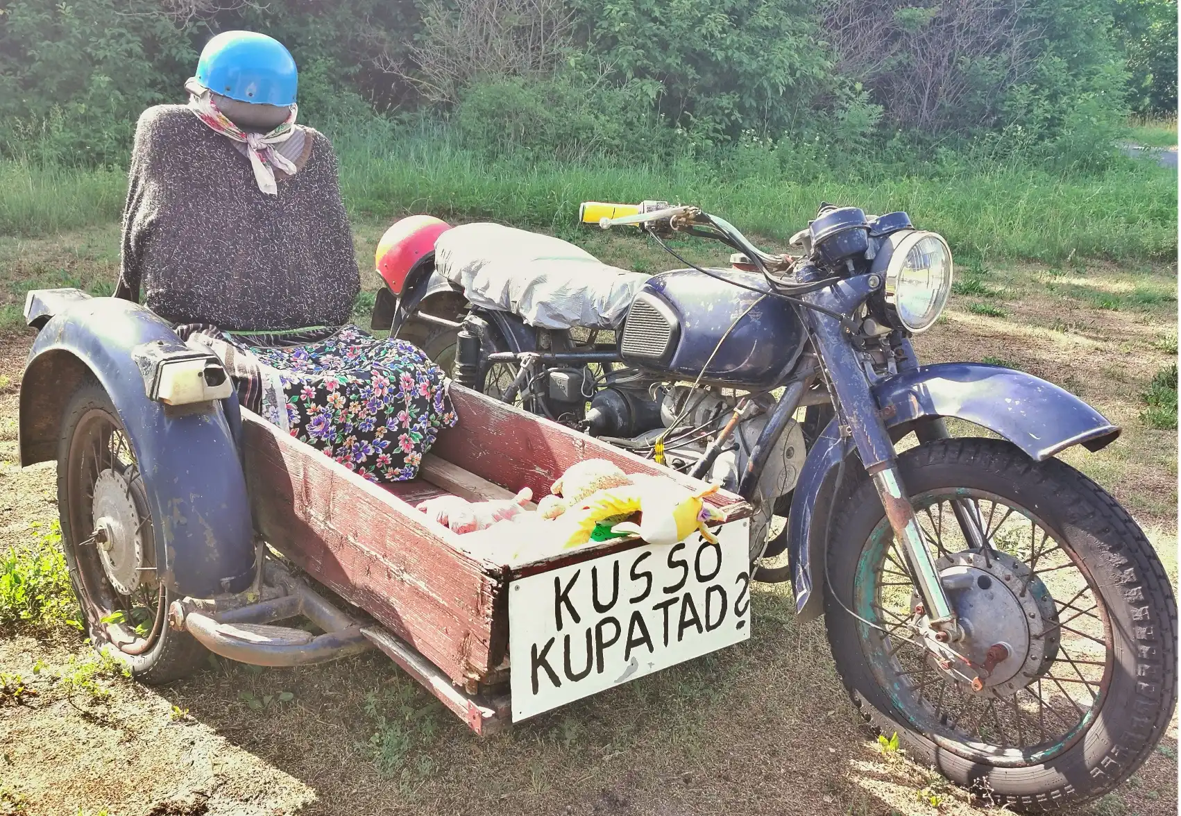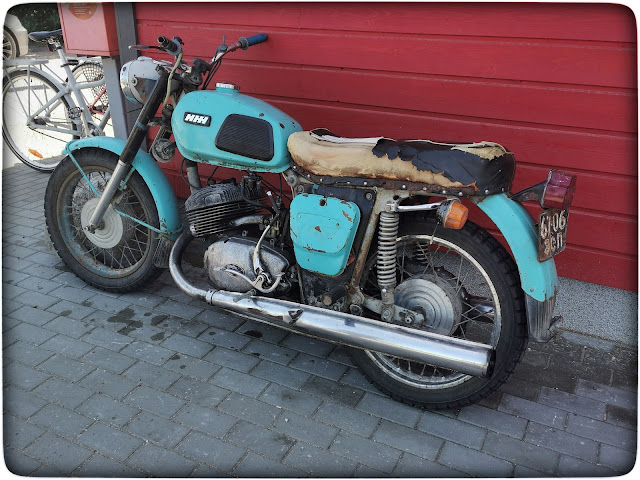 Poe teise seina juures oli üks vana mootorratas seismas. Sellist masinat siin saarel peale muuseumi näha pole olnud. Ma ei teagi, kas see sõidab ka või lihtsalt toodud turistidele vaatamiseks. Mind igatahes rõõmustas see leid, sest arvasin, et mis Kihnu see on ilma mootorratasteta.