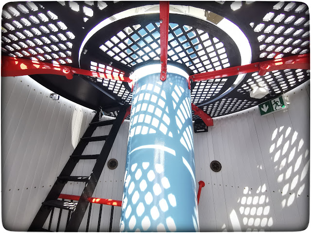 Torn kajas külastajatest hästi. Nagu uksest sisse astusin, siis siin oli kohe ja tugevalt tunda inglaslikku vaibi, ehk siis päritolu energia on sees. Stiil ka natuke selline. Värvid mulle meeldisid siin, rõõmsad ja julged, mis omavahel kokku sobitatud. Lisaks siin olevat ka näitus. Seekord olid siin väikesed maalid torni kohta igal korrusel ja ilusad tööd olid, mulle meeldis kunstniku stiil, aga autori nimi meelde ei jäänud. Tööde ilust oli tugevam muidugi torn ise ja põnevus tippu saamisest, seega piltide juures palju ei peatunud, osasid ei vaadanud üldse lähemalt. Märkasin, et maalidele ei pööranud teised külastajad ka tähelepanu, mindi tuimalt mööda.