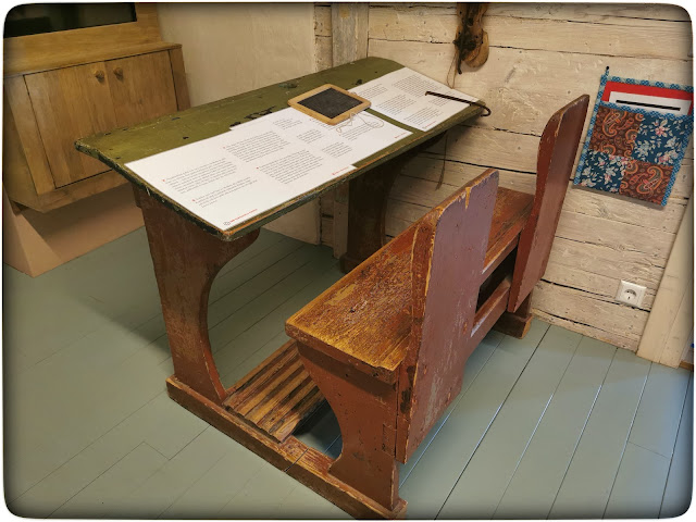 Samas ruumis oli huvitav näha ka taluaegset koolipinki. Vaatasin seda ja mõtlesin, küll olid ikka toona inimesed väikesed, tänapäeva seitsmeaastane küll siia normaalselt istuma ei mahu. Nüüd järeldasin, et inimesed olidki toona lühemad.