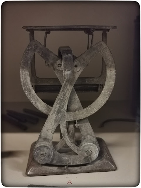Järgmises ruumis oli juba teine temaatika ja seinal interaktiivne monitor, kus käimas mustvalge film ja mida oli võimalik vaatama jääda vanale talutoolile, mis üks osa eksponaatidest. See ka huvitav, et külastajatel oli lubatud kasutada näituse osana olevat tooli videote vaatamisel, pole üheski teises muuseumis sellist võimalust kohanud. Mu juuniorile väga meeldis see lühifilm ja oli huvitatud kõigest mis siin oli. Meil aega oli küllaga ja saime omas tempos kõike lugeda infoks. Minu jaoks oli antud ruumis kõige huvitavamaks esemeks vanaaegne hõbeda kaal. See nägi küll selline välja, et kui poleks otsinud nimetust, siis ei oskaks arvatagi.