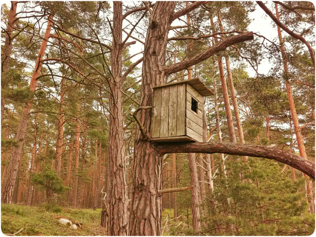 Mööda rannaga kõrvuti kulgevat rada liikudes leidsime nii mõndagi uut. Päris mitme puu otsas leidus suuri kandilisi pesakaste, mis arvatavasti loodud kosklate jaoks. Enamik neist oli üsna lagunenud seisus, vaid mõni üksik parema väljanägemisega. Huvitav, et siin saarel neid nii palju on paigaldatud.