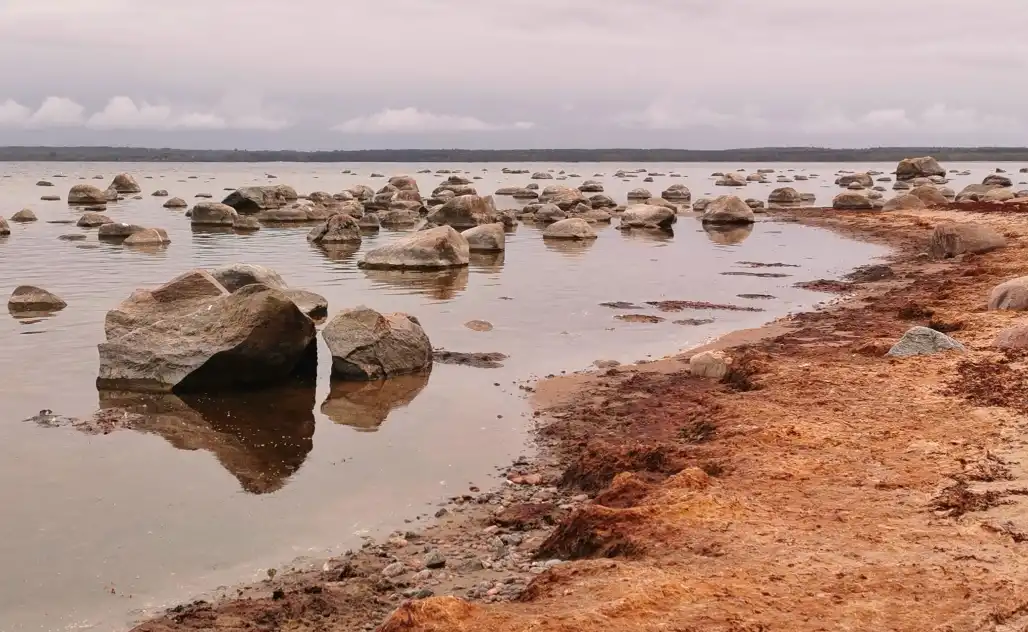 Edasi liikudes muutus rannajoon kivisemaks ja sekka võis rannast leida juba suuremaid kive. Need on merejää poolt kokkukuhjatud rändrahnud. Katkendlikus rannaastangu ülaosas on kaldapääsukeste pesad. Mõnes kohas oli ka palju mahalangenud puid.