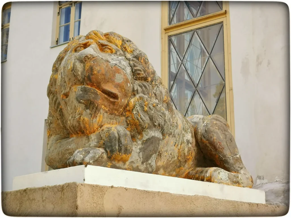 Kahelpool treppi olevad lõvi kujud olid natuke üllatavalt tuhmid. Internetis leidus nii palju pilte, kus nad on korralikult kuldses toonis. Praegu on nad nii hallid ja näha nendel üksikuid laike eelnevast kuldsest kattest.